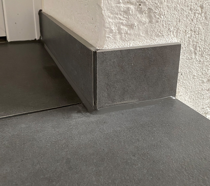 Nach eingehender Bestandsaufnahme und Beratung haben wir die Stufen neu aufgebaut, fachgerecht abgedichtet und mit hochwertigen Natursteinplatten belegt. Die gewählten Materialien sind nicht nur frost- und witterungsbeständig, sondern sorgen auch für ein harmonisches Gesamtbild im Eingangsbereich.