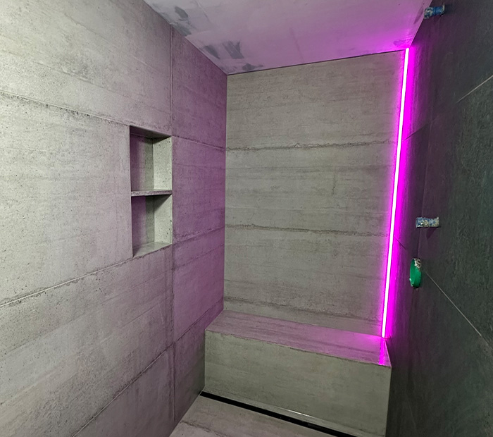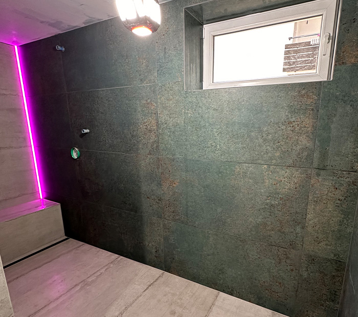 Bei diesem Projekt wurde ein komplettes Badezimmer mit hochwertigem Naturstein ausgestattet – an Wänden, Böden und in der Dusche. Ziel war ein edles, ruhiges Gesamtbild mit klarer Linienführung und langlebiger Qualität. Naturstein verleiht dem Raum nicht nur eine außergewöhnliche Optik, sondern auch eine angenehme Haptik und ein unverwechselbares Ambiente.