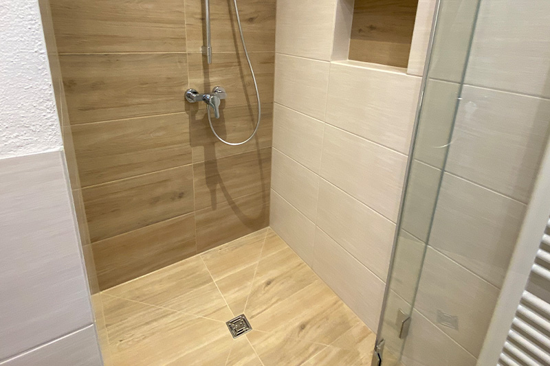 In diesem Projekt wurde ein Badezimmer vollständig modernisiert und mit Fliesen in Holzoptik sowie einer bodengleichen Dusche ausgestattet. Das Ziel: ein Raum, der wohnlich wirkt, aber gleichzeitig langlebig und pflegeleicht ist.